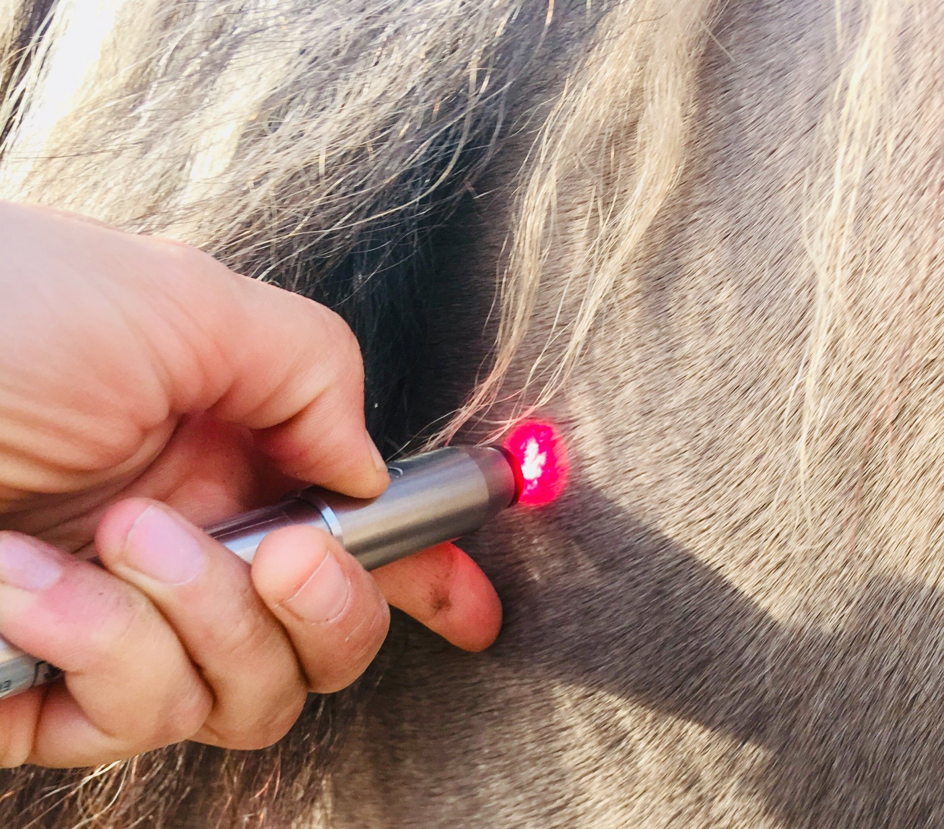 Besonders gut lassen sich solche Verspannungen am sedierten Pferd ertasten und behandeln. Deshalb biete ich im Anschluss an die Zahnbehandlung auch einen allgemeinen Muskelcheck an.