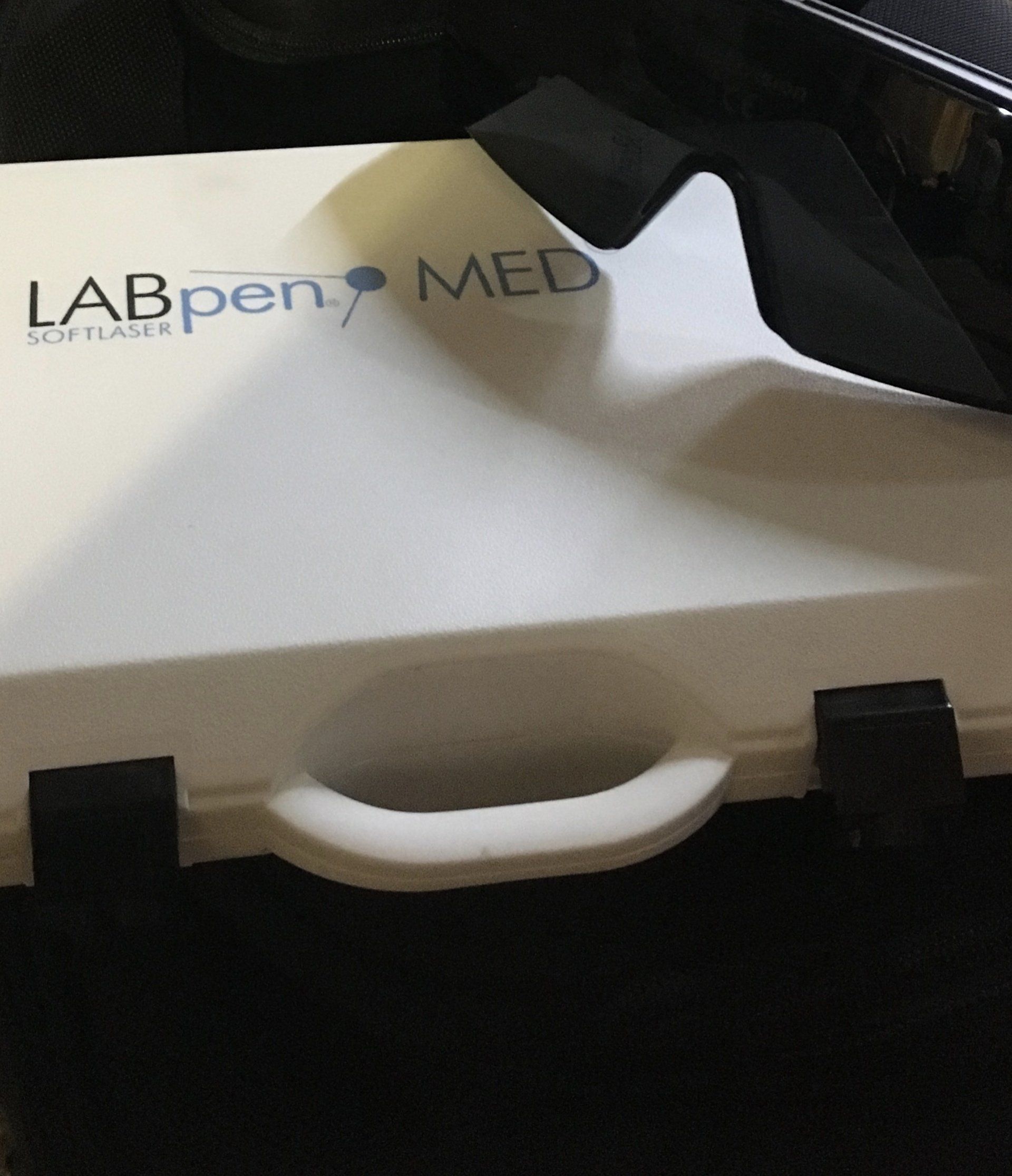 In meiner Praxis verwende ich einen medizinischen Therapielaser LABpen MED 100 mit einer Leistung von 100 mW und einer Wellenlänge von 660 nm.